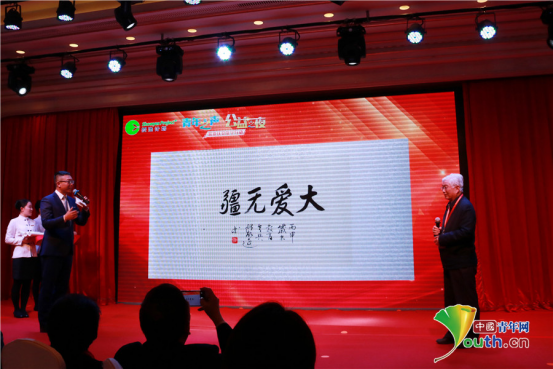 授渔计划理事会名誉理事长、中国教育学会名誉会长顾明远向获奖者赠送题字。中国青年网记者 张群 摄