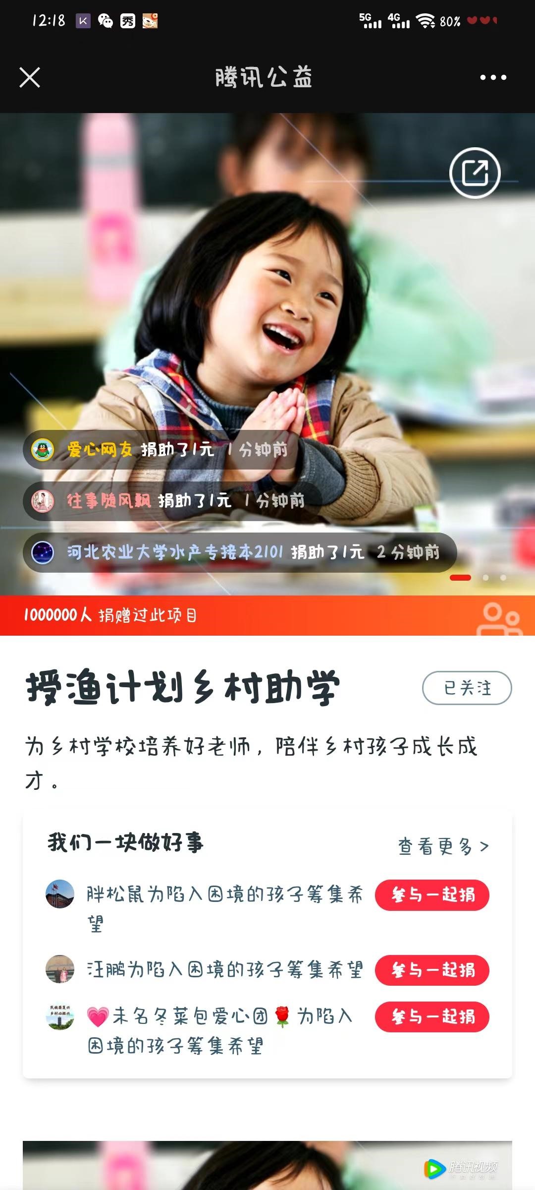 四地教育局、多个爱心团体、多家爱心企业、多个粉丝团体、40余名爱心传播官和授渔计划一起,助力乡村助学项目。授渔计划在此感谢您的爱心!本次筹集的善款,将妥善用于授渔计划乡村助学项目,为乡村学校留住好老师,帮助乡村学子共享好课堂,支持乡村教育振兴!