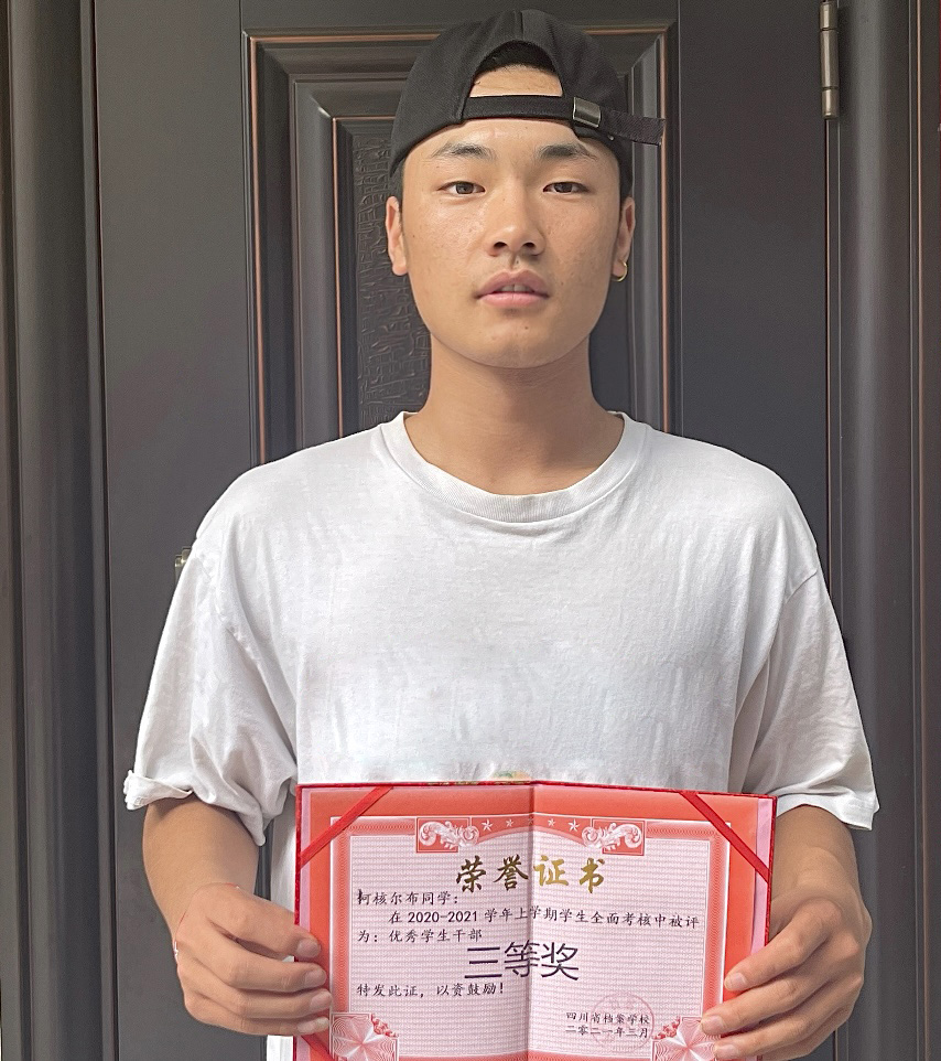 仅一学期,阿布就在学校的全面考核中获得了优秀学生干部三等奖。以前从未拿过画笔的他,第二学年就在学校举办的美术作品技能竞赛中,获得二等奖,期间还考取了各种技能证书。