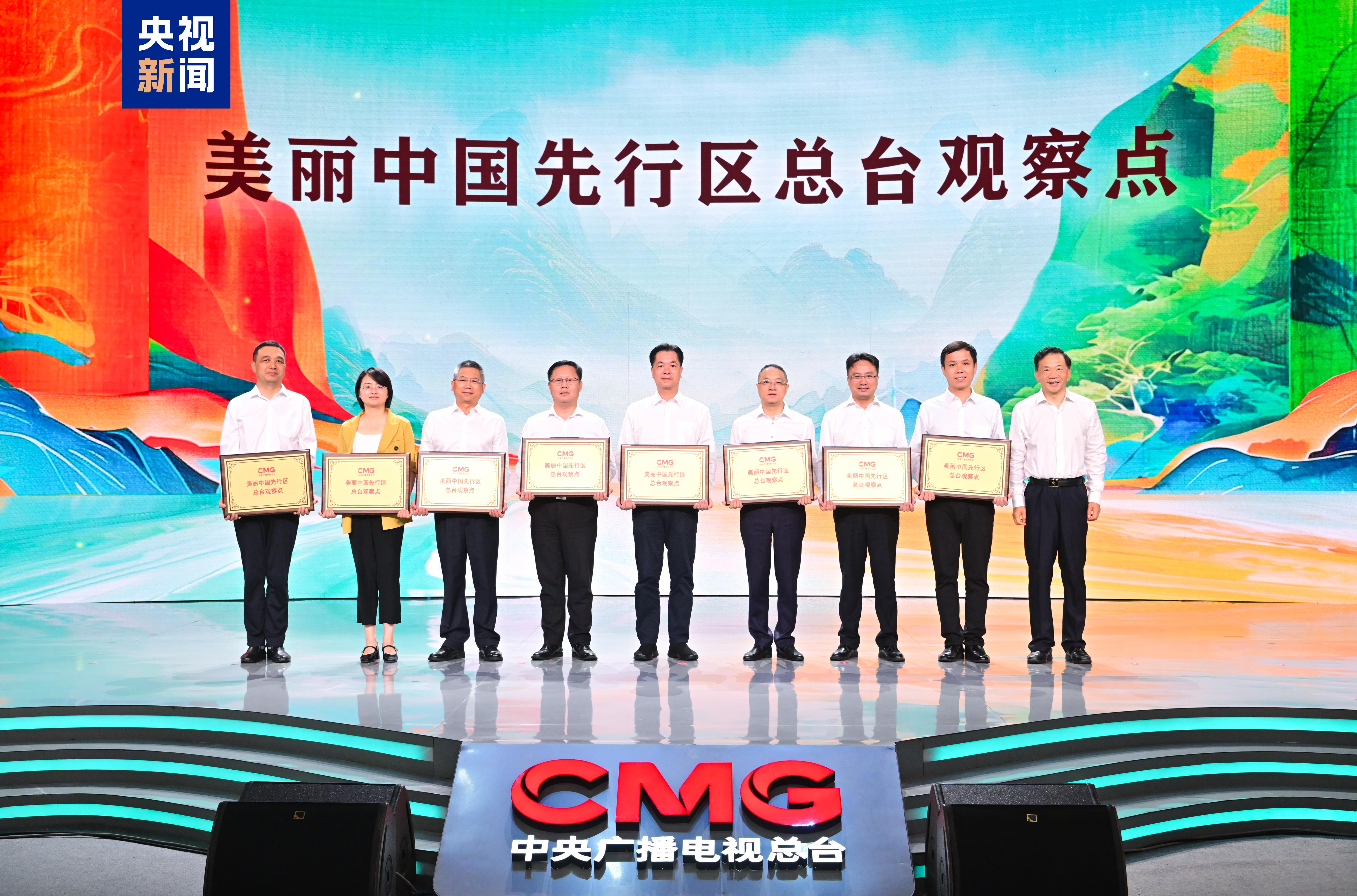△福建省三明市副市长钟科,湖北省黄石市副市长郭双喜,重庆市人民政府办公厅副主任陶晓锋,四川省生态环境厅机关党委书记陈秋绿,新疆维吾尔自治区人民政府副秘书长熊哲家,江西省庐山市委常委、宣传部部长邹菲,云南省大理白族自治州弥渡县副县长张魁元,浙江省湖州市安吉县委宣传部副部长、网信办主任张国锋等地方代表获颁赠“美丽中国先行区总台观察点”牌
