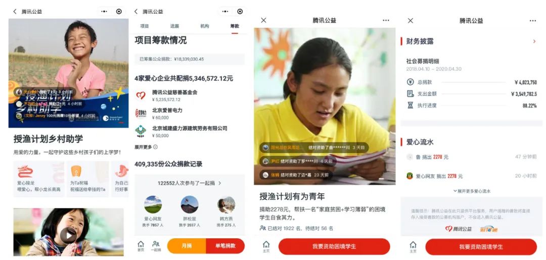 自2014年11月以来,授渔计划联合腾讯公益共计上线53个筹款项目,通过网络筹款为陷入困境的学生家庭以及大病家庭带去帮助。