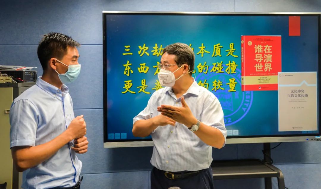 (北京师范大学“十佳教授”钱志亮教授通过北师大的授课端为丰宁县乡村教师授课)