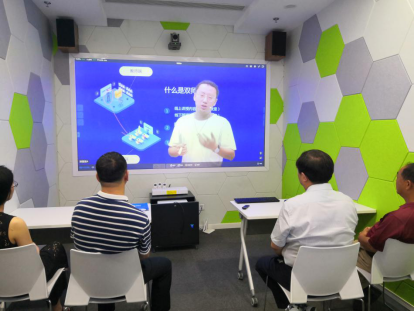 大家在“双师课堂”项目技术支持单位北京百家双师科技有限公司实地体验和了解“双师课堂”项目的信息技术和运用情况。